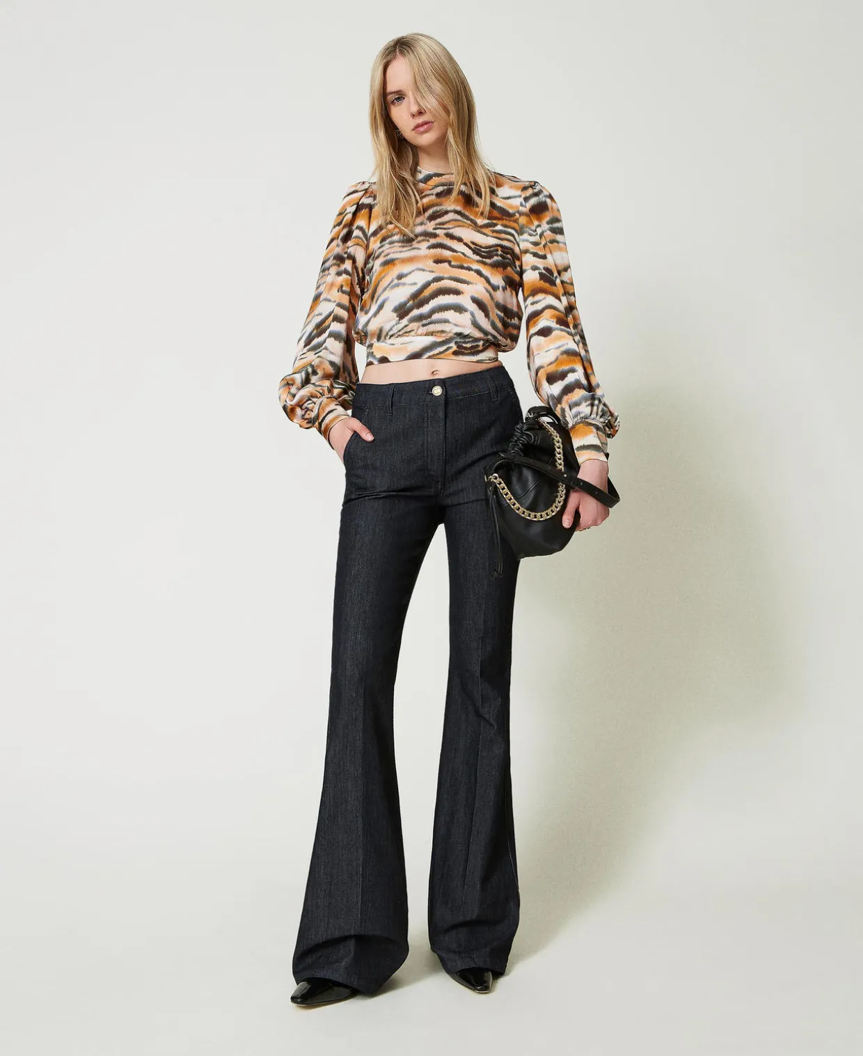 Cropped-Bluse Aus Satin Mit Animaldessin