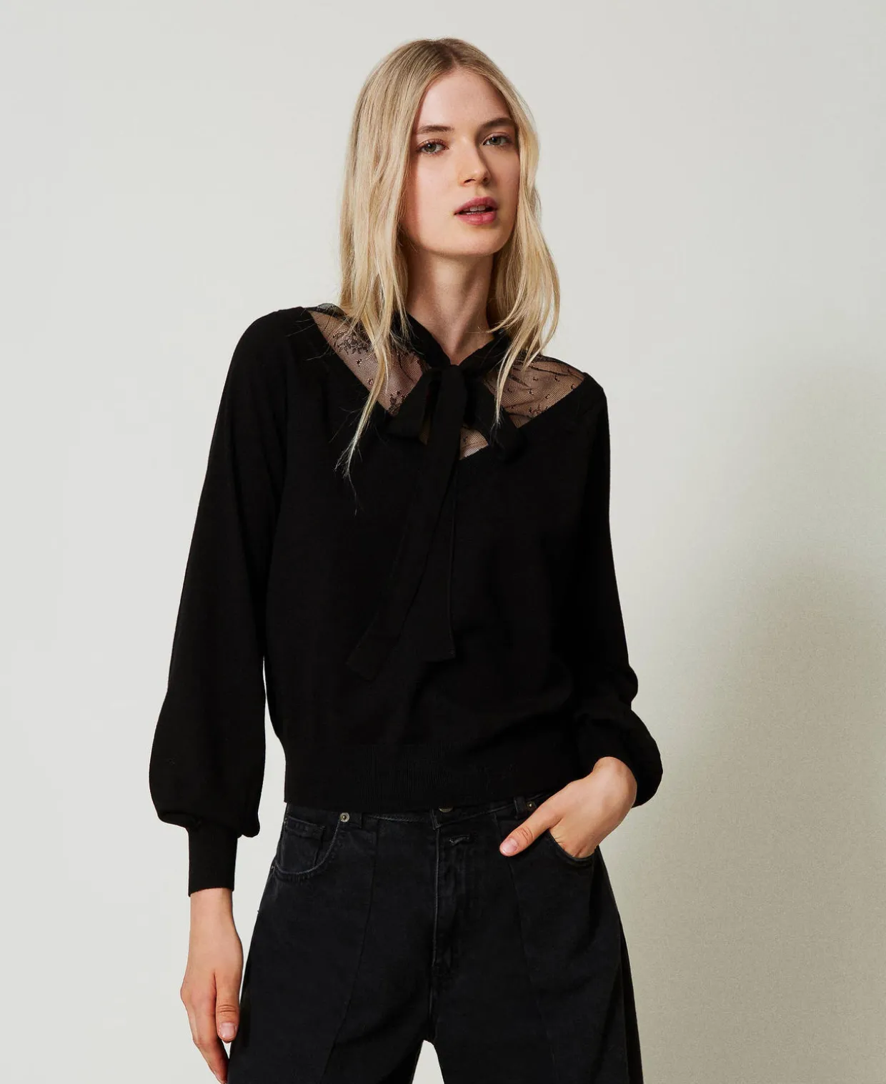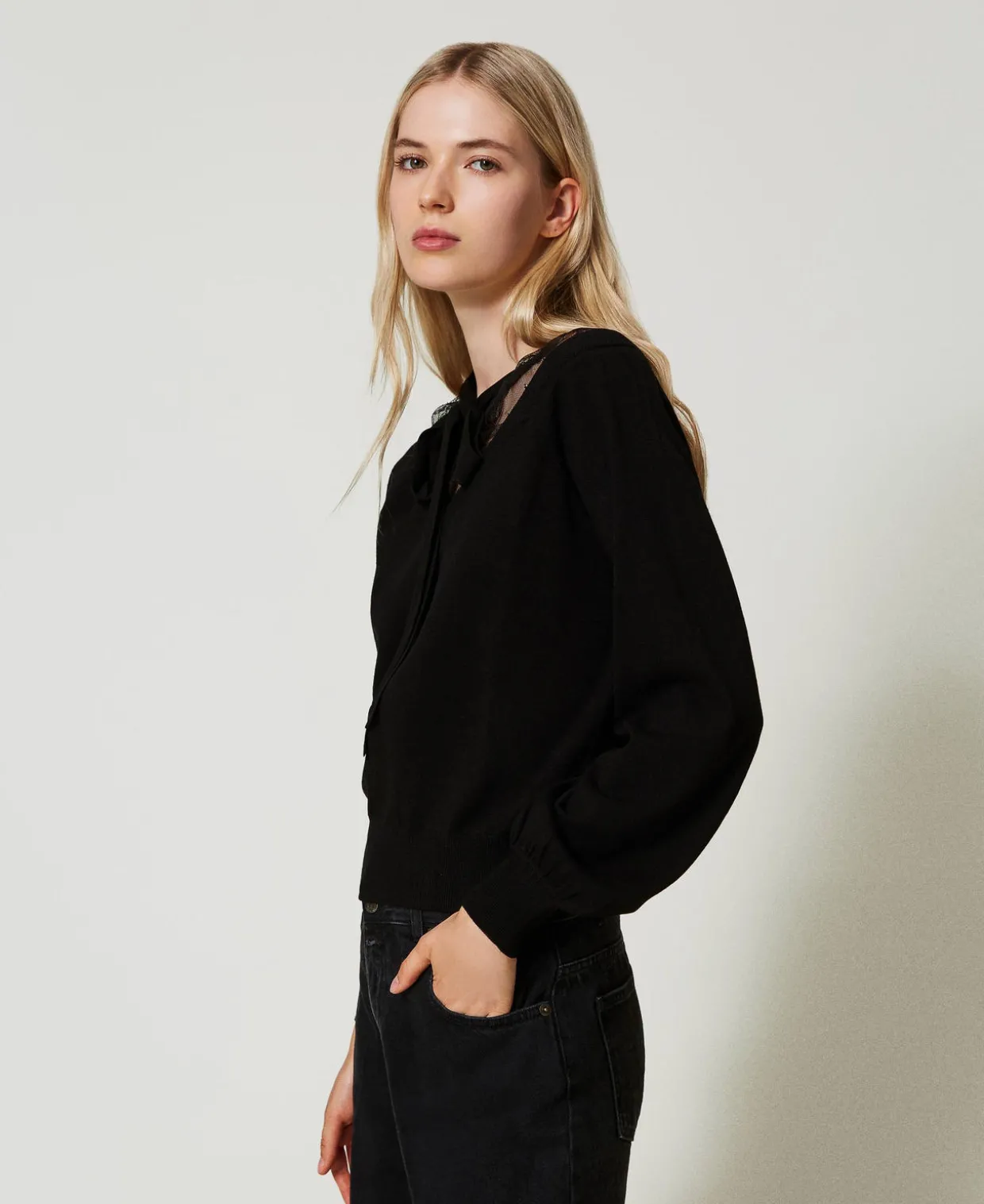 Pullover Mit Spitze Und Schleife