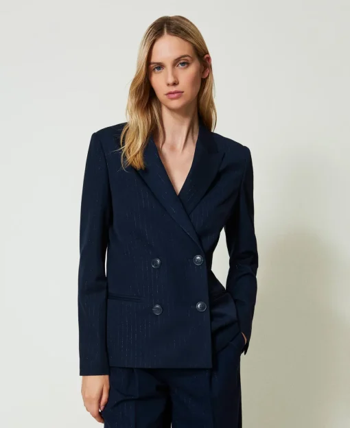 SKU: N/A Categories: Blazer, Hosenanzüge Und Kostüme, Jacken Und Outerwear, Jacken Und Steppjacken, Kleidung Tags: INDIGO LUREXNADELSTREIFEN, TWINSET MILANO