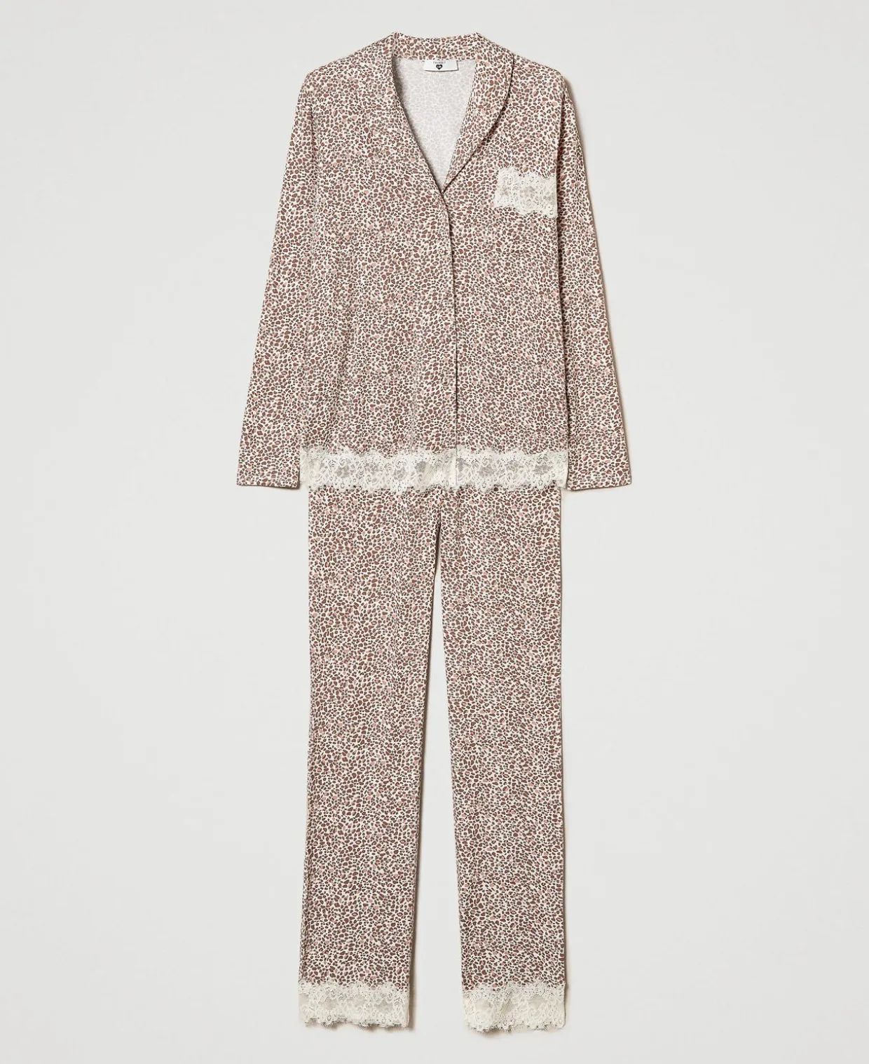 Herrenmäßiger Pyjama Mit Print Und Spitze