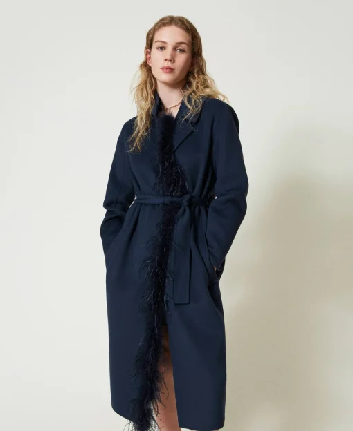 Mantel Aus Zweilagigem Wollmischtuch Mit Federn
