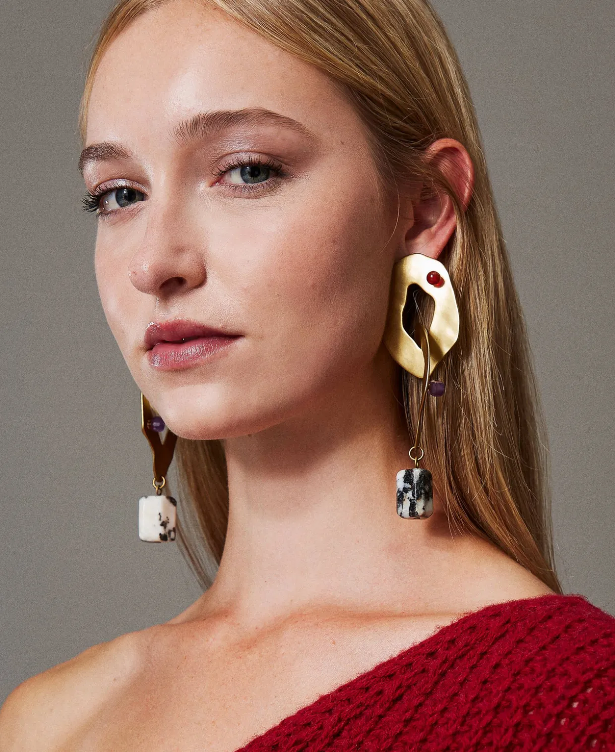Ohrringe Aus Kettengliedern Aus Metall Mit Schmucksteinen