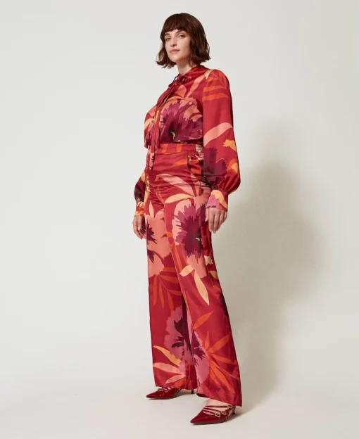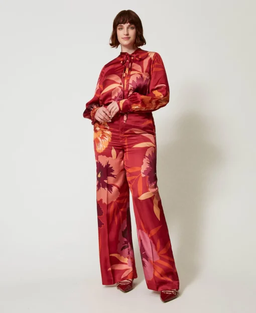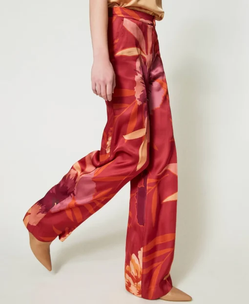 Wide-Leg-Hose Aus Satin Mit Blumendessin